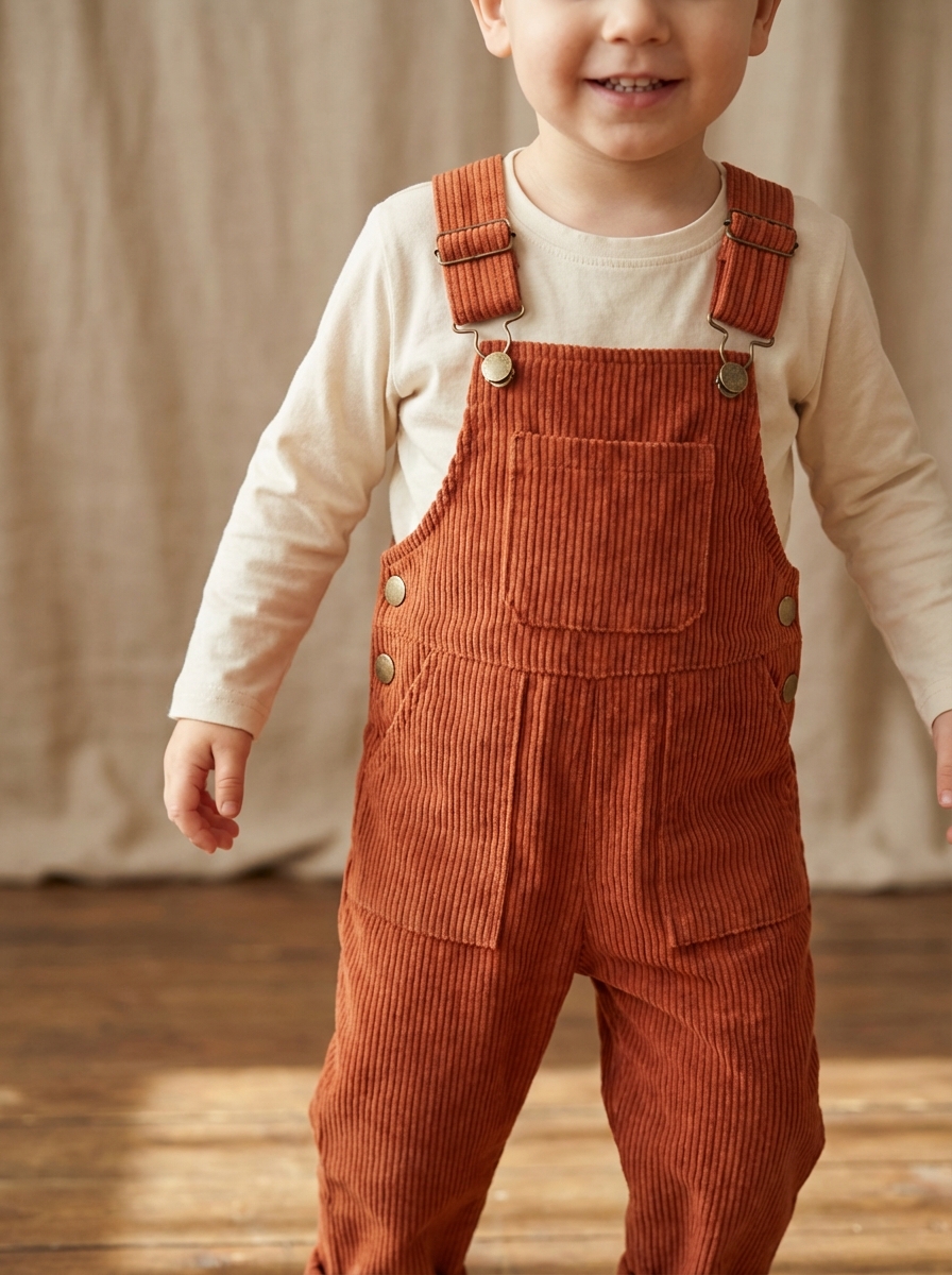 Комбинезон насыщенного рыжего оттенка станет ярким акцентом в гардеробе ребенка и поможет создать множество необычных запоминающихся образов.