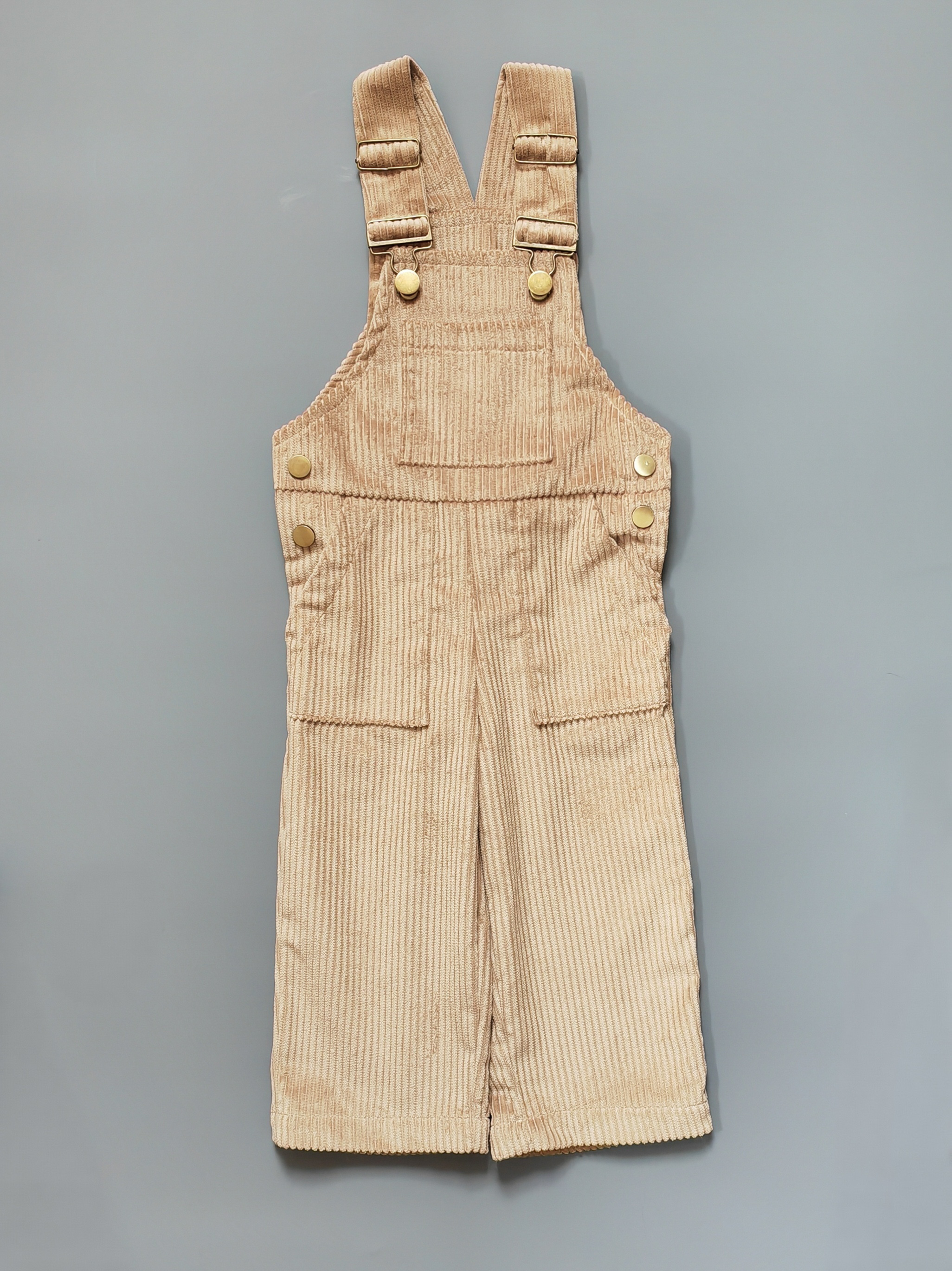 Комбинезон выполнен из 100% хлопкового вельвета. Эта мягкая и практичная модель прекрасно подойдет для прогулок и активных игр, а также будет отлично смотреться на празднике или фотосессии благодаря необычной фактурной ткани.