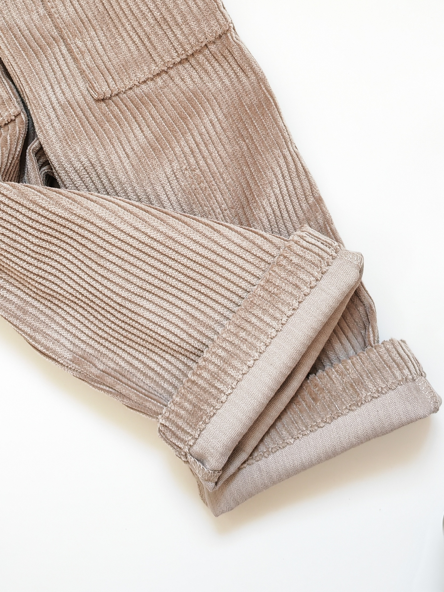 - Хлопковый вельвет в широкий рубчик — приятная на ощупь ткань с мягким ворсом